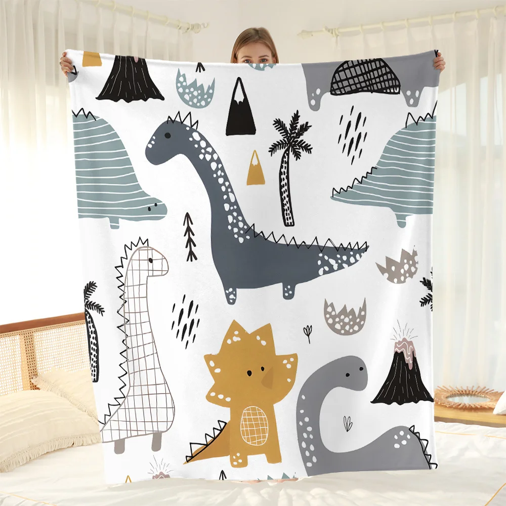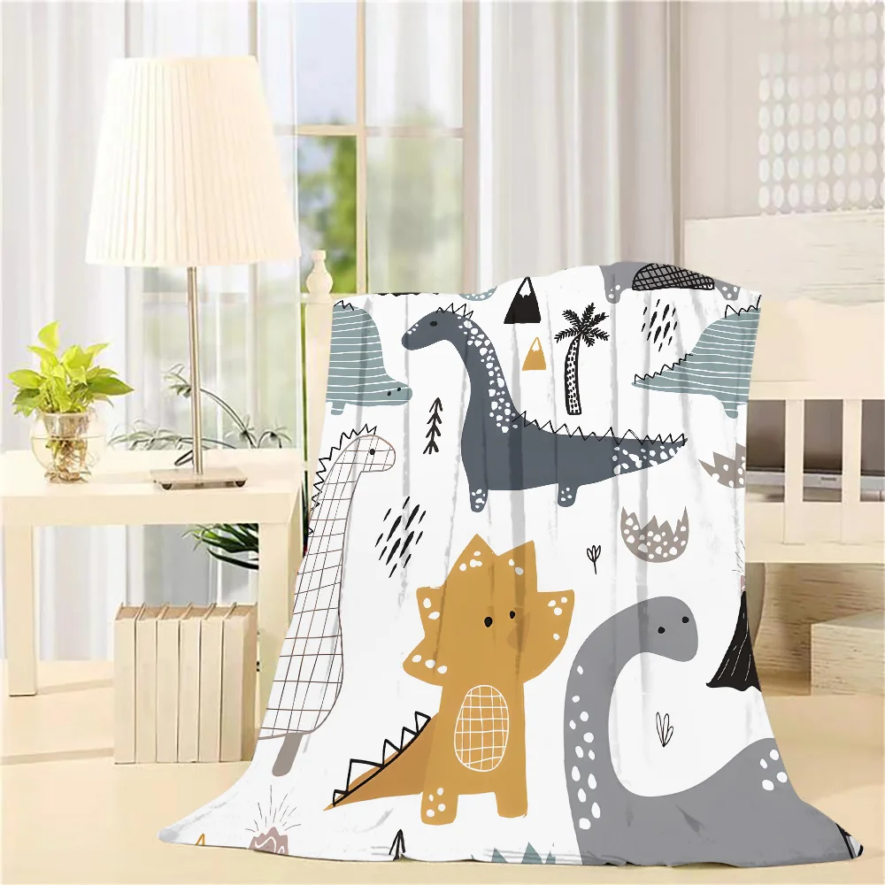 1Pc Comfortable Cartoon Dinosaur Pattern Blanket, Polyester Fabric Machine Washable, Suitable for Bedroom Living Room Decoration