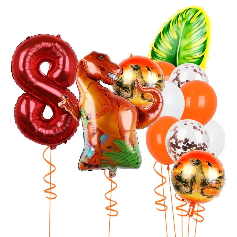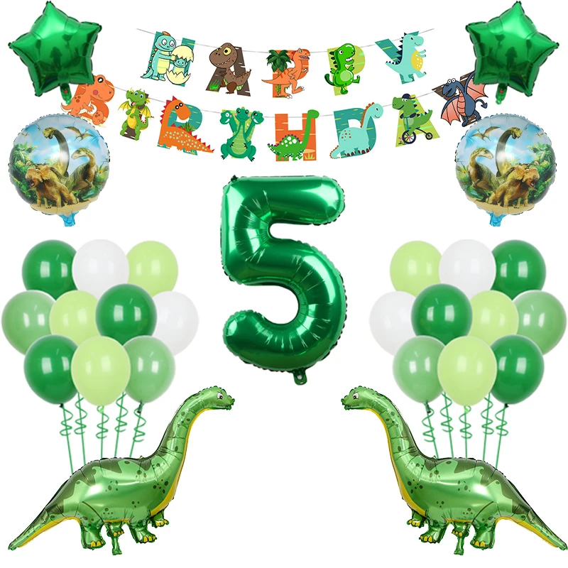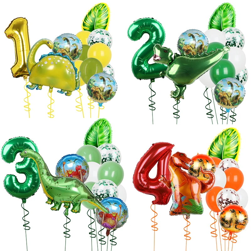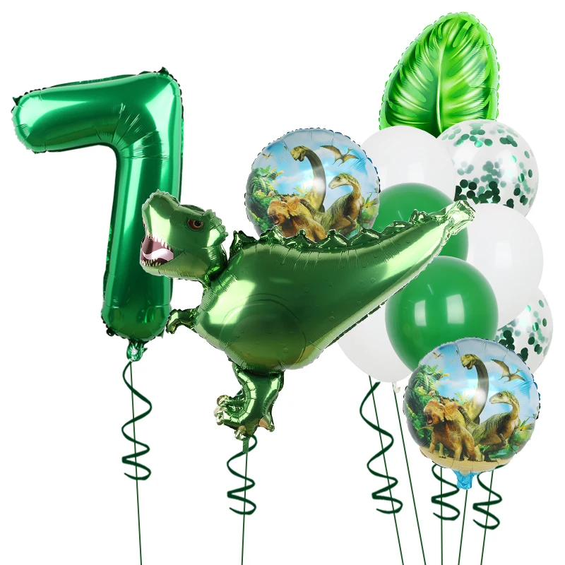 1Set Dinosaur 32Inch Number Leaf Aluminum Film Balloon Set Jurassic Dinosaur Theme Green Balloon Kids Birthday Party Supplies