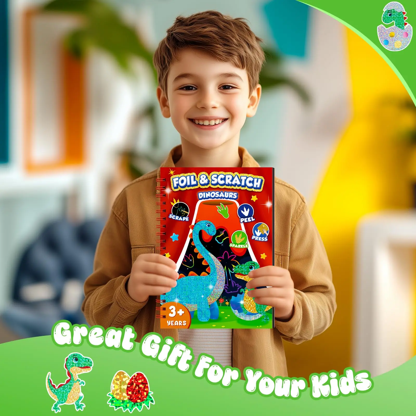 Dinosaur Scratch Art Book for Kids Foil and Scratch Art Paper No Mess Art Crafts DIY Creative Activity Kit for Birthdy Gifts