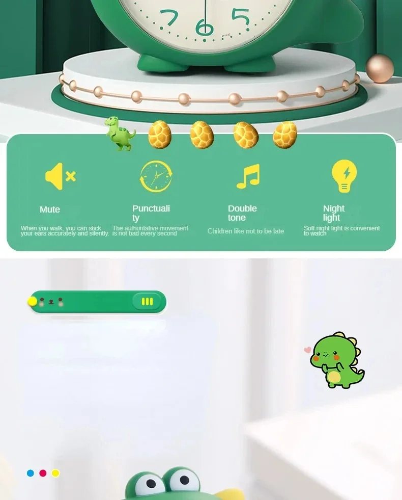 🦖Soft Night Light: Equipped with a soft night light, this clock allows children to easily check the time at night. The gentle light is non-intrusive, helping them maintain sleep while providing convenience.
