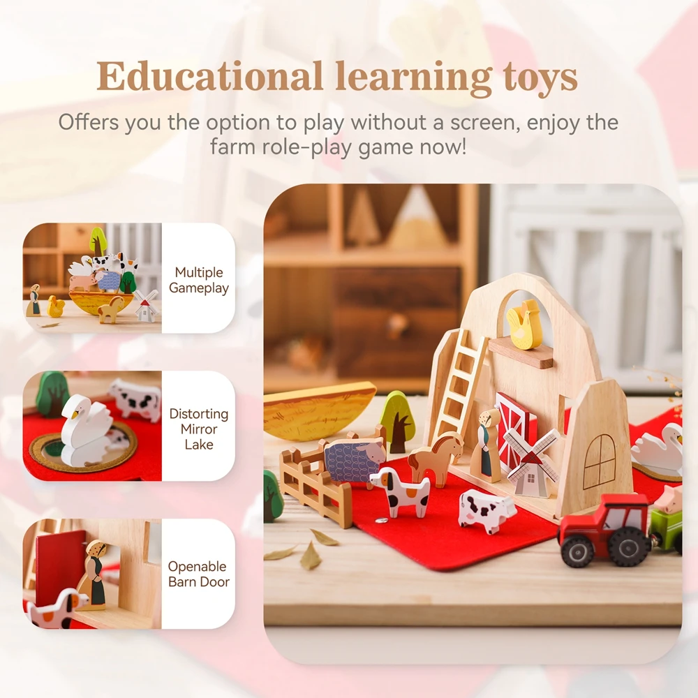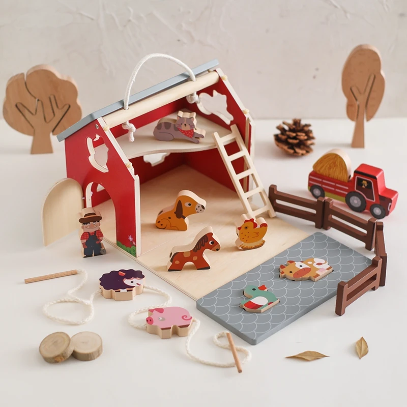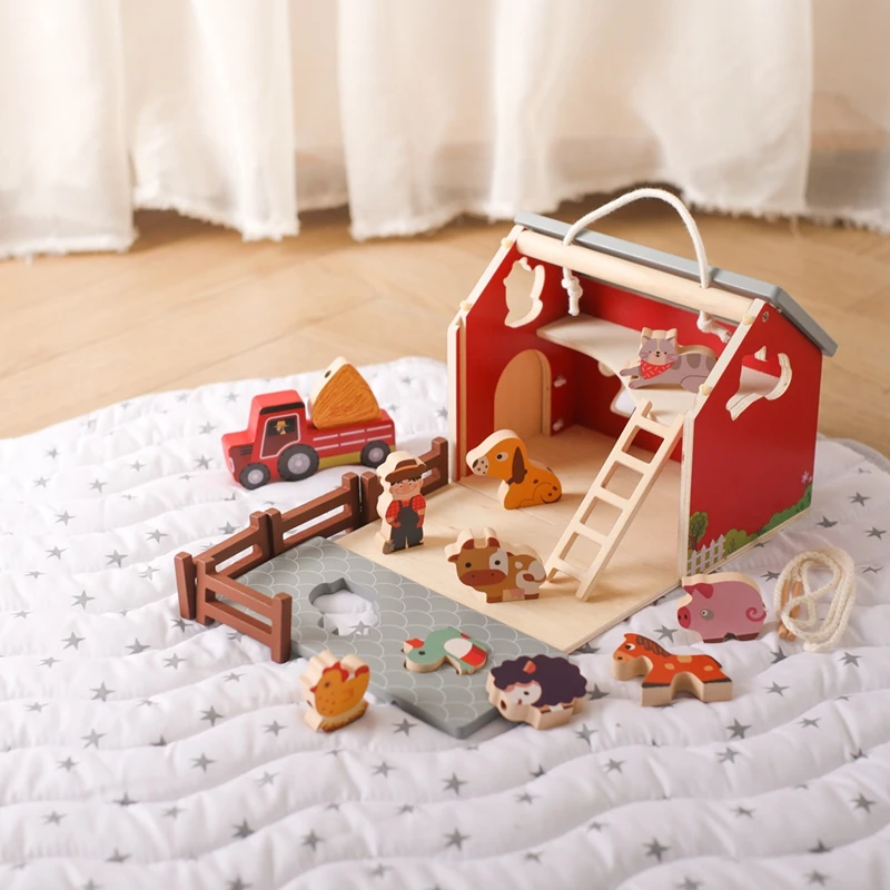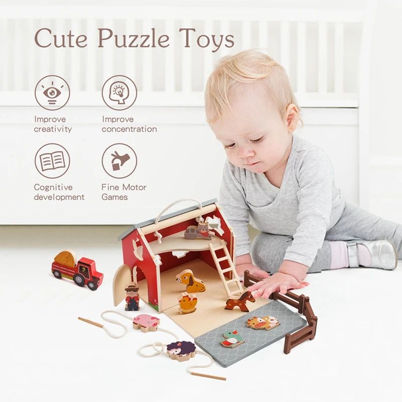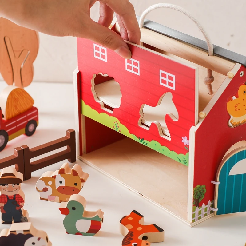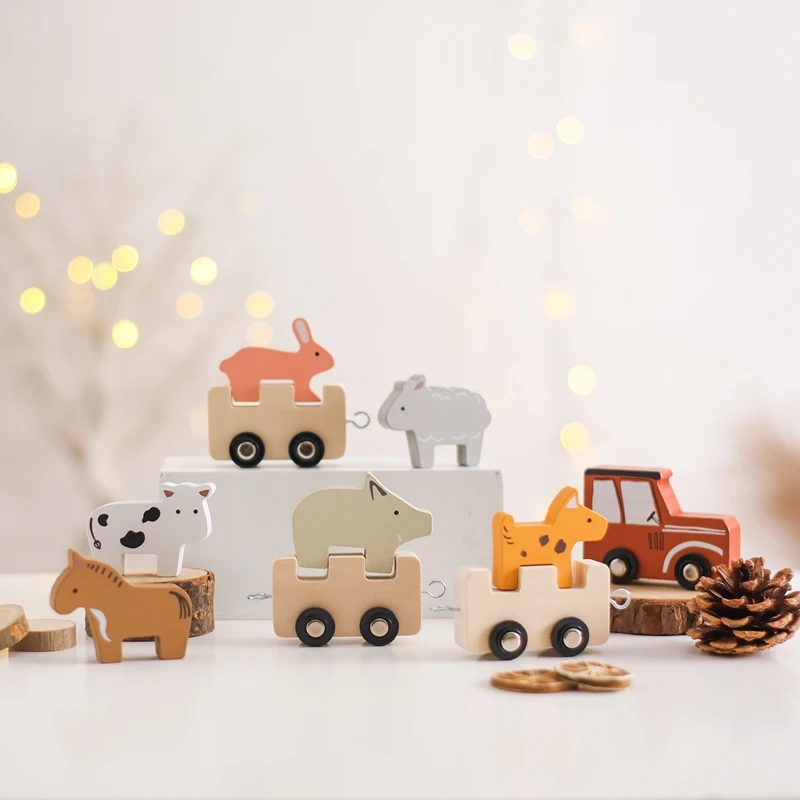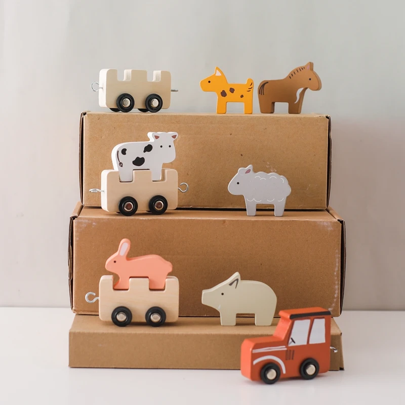 Children Montessori Wooden Toys Dinosaur Car Animal Park Barn Toy Wooden Stacking Game Kid Educational Toy Christmas Gift