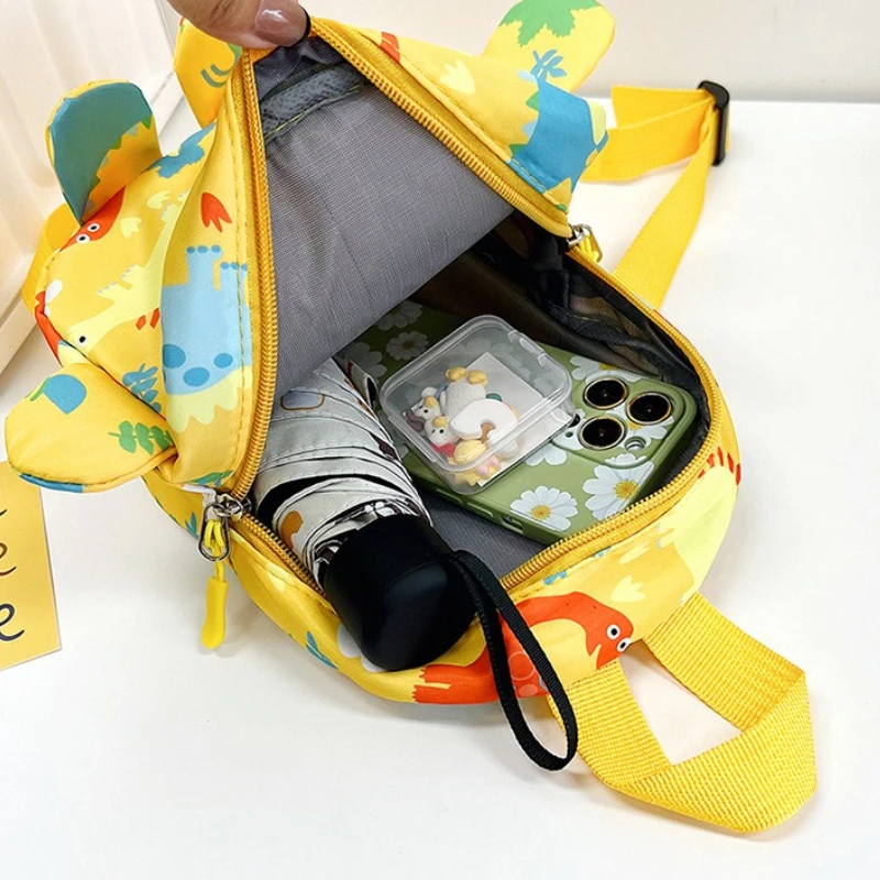 This backpack features a chest strap, padded back, and adjustable shoulder straps, and is printed in vibrant colors. It's perfect for preschool, kindergarten, daycare, the playground, or a day out. Lightweight children's backpack: weighs only 90g. Measures 18cm x 22cm x 9cm. Features a cute cartoon dinosaur pattern. Made of durable, easy-to-clean waterproof polyester fabric. It features a convenient double zipper closure, a spacious main compartment, and a front pocket with ample space for pens, crayon boxes, snacks, and toys. Mesh side pockets hold a water bottle. Padded shoulder straps and adjustable buckles ensure your child's comfortable carrying.