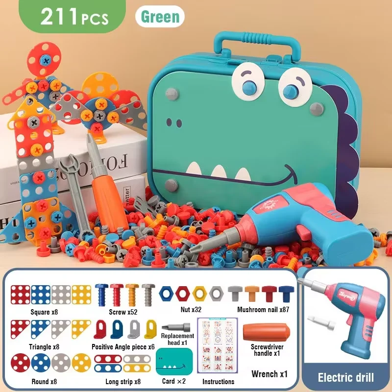 Children Toys Tool Set Electric Drill Screw Nut 3D Puzzle Toys Pretend Play Dinosaur Drilling Assembly Educational Toys for Boys
