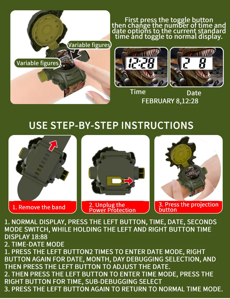 Dinosaur Projection Electronic Watch Cartoon Watch Clock Kids Christmas Gift for Kids - Fun Luminous Toy and Kindergarten Gift