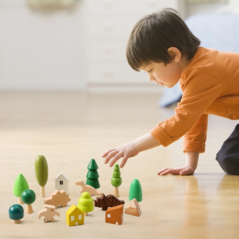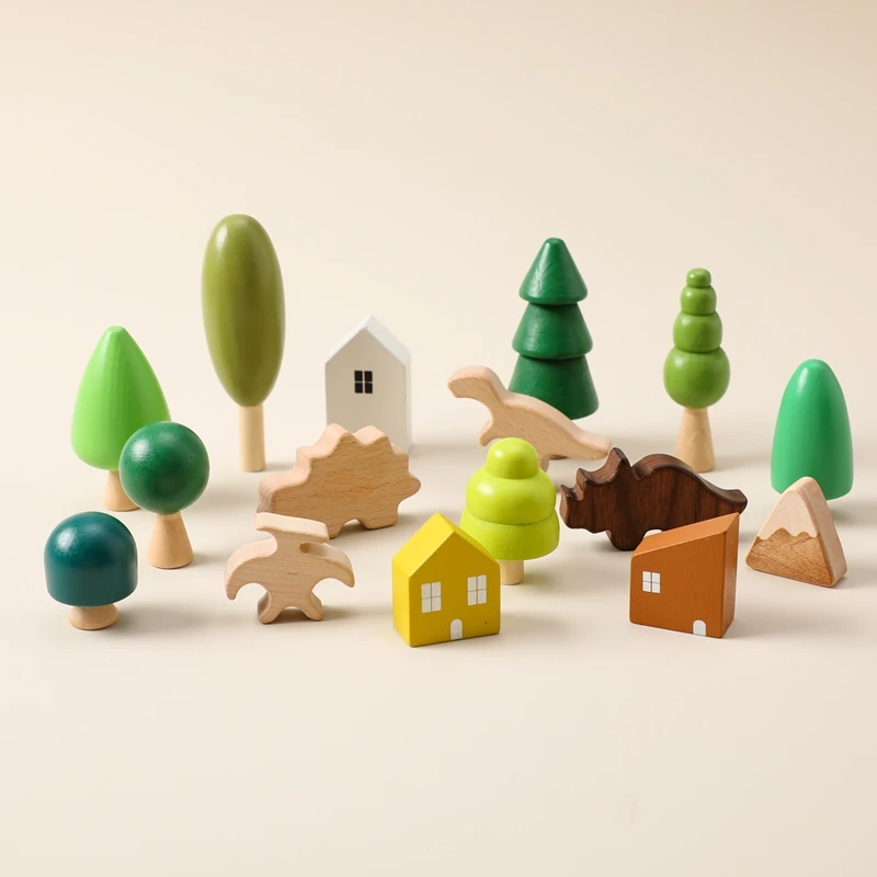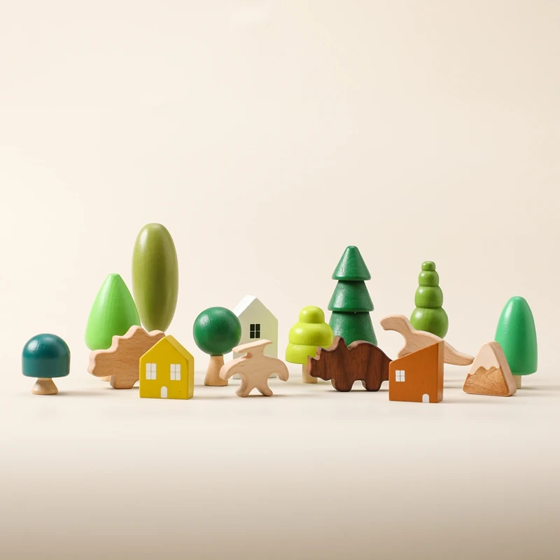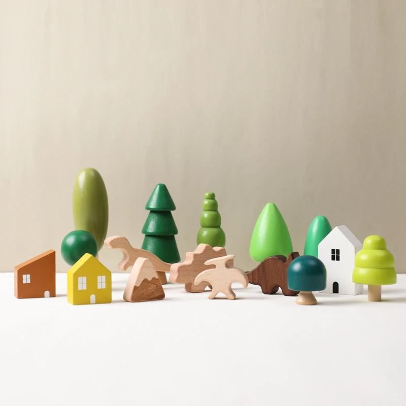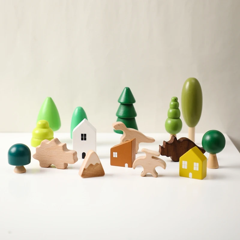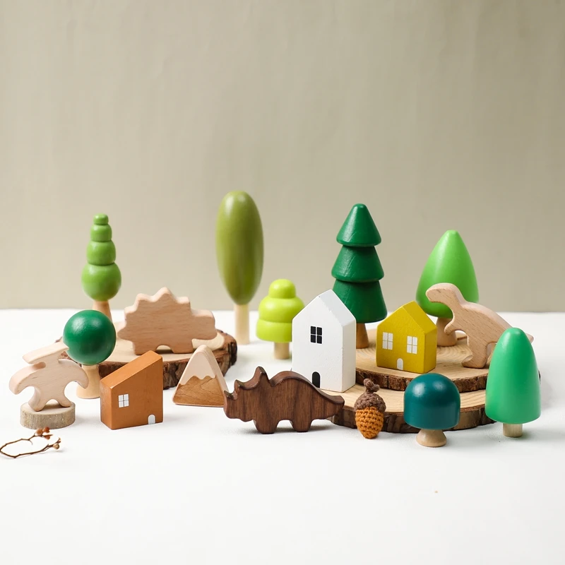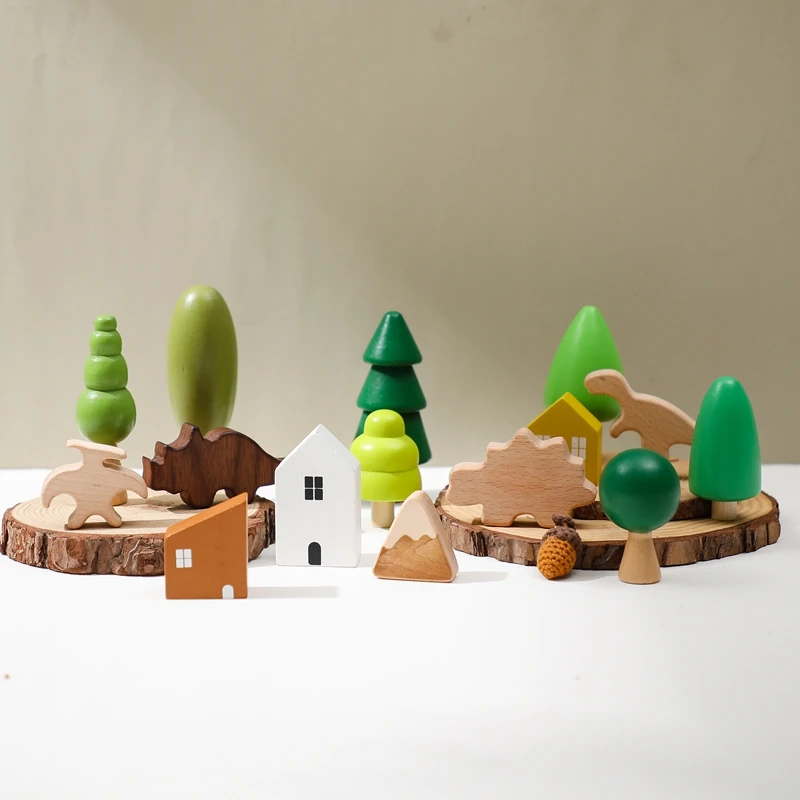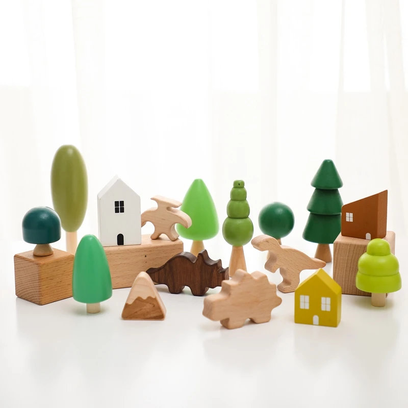 Montessori Building Block Wooden Forest Dinosaur Ornament Construction DIY Children Building Blocks Puzzle Toy for Children Gift
