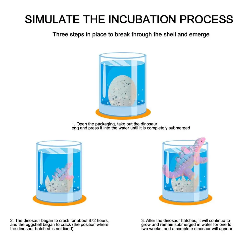 5. Safety and Environmental Protection: The Great Dinosaur Water Incubation Egg Toy is made of safe and environmentally friendly materials, harmless, and meets the safety standards for children's toys. At the same time, the dissolution process of the eggshell is also safe and will not cause any harm to children.