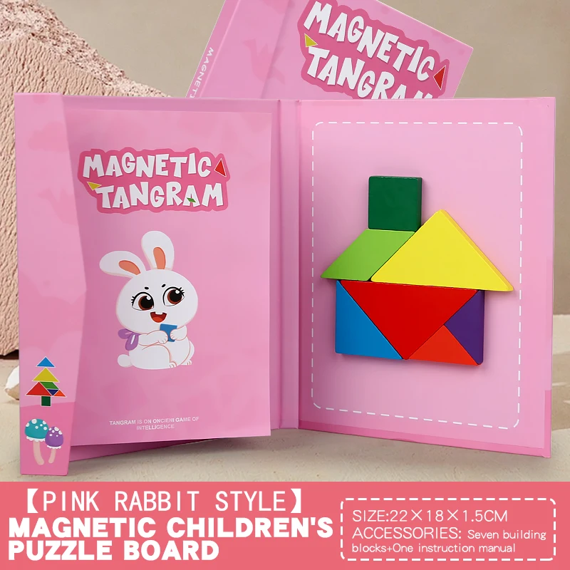 Wooden Jigsaw Magnetic Tangram Puzzle Book Educational Toys for Children Baby Kid Portable Montessori Learning Intelligence