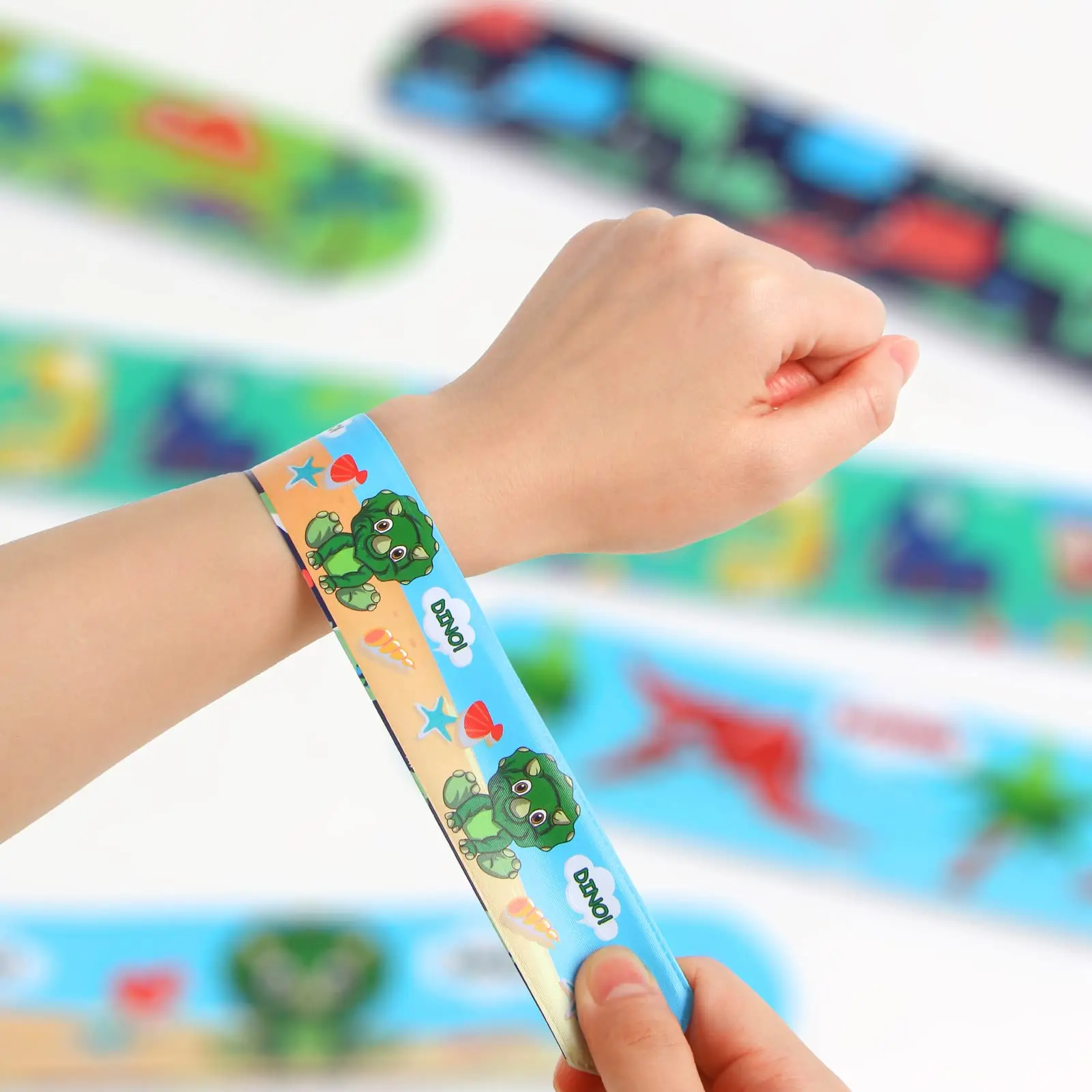 Material: Our dinosaur slap bracelets are made of PVC, metal core inside. Dinosaur slap bracelet is not easy to fade and has soft edges, which can protect kids’ skin well. Easy to Use: Putting one end of the bracelet on your wrist, tapping it lightly, the bracelet will be adjusted to the size of your wrist, and it will be firmly attached to your wrist, durable and comfortable. Application: Dinosaur slap bracelets are suitable for birthday parties, theme parties, class prizes, birthday gifts, Christmas gifts. Perfect Gifts: Unique dinosaur patterns can inspire children's imagination, creativity. As a gift, children can give it to their good friends to enhance their friendship. This bracelet is suitable for adults and kids.