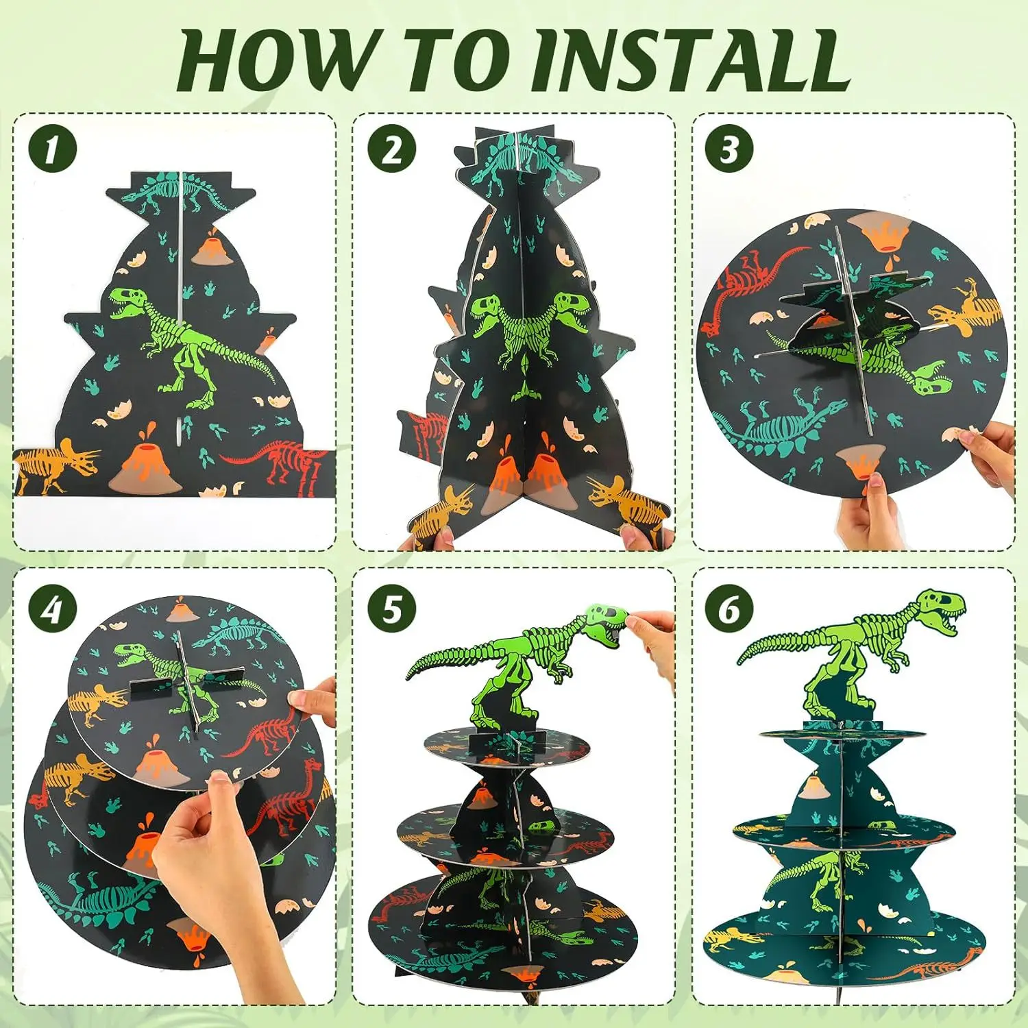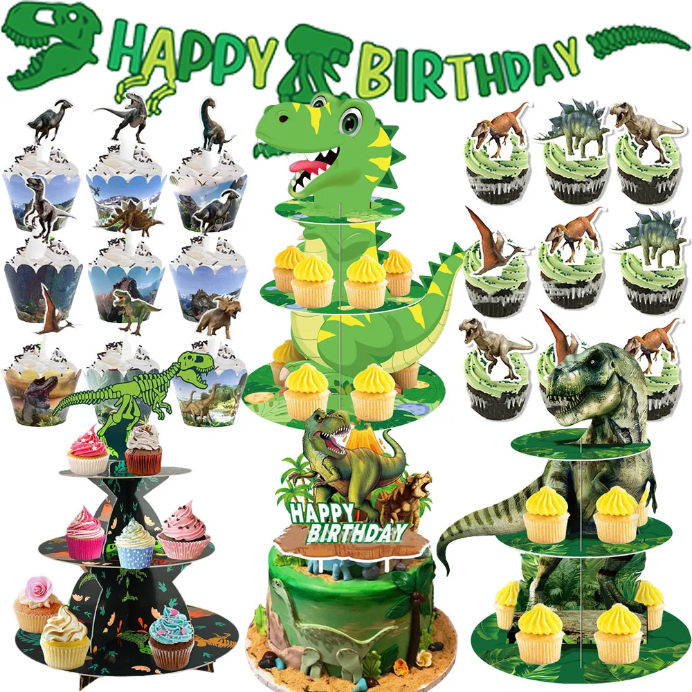 3 Tier Dinosaur Cupcake Stand Party Decor Cupcake Toppers Dino Dessert Tower Jungle Dino Theme Kid Boy Birthday Party Supplies