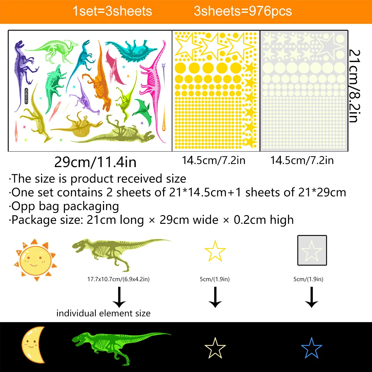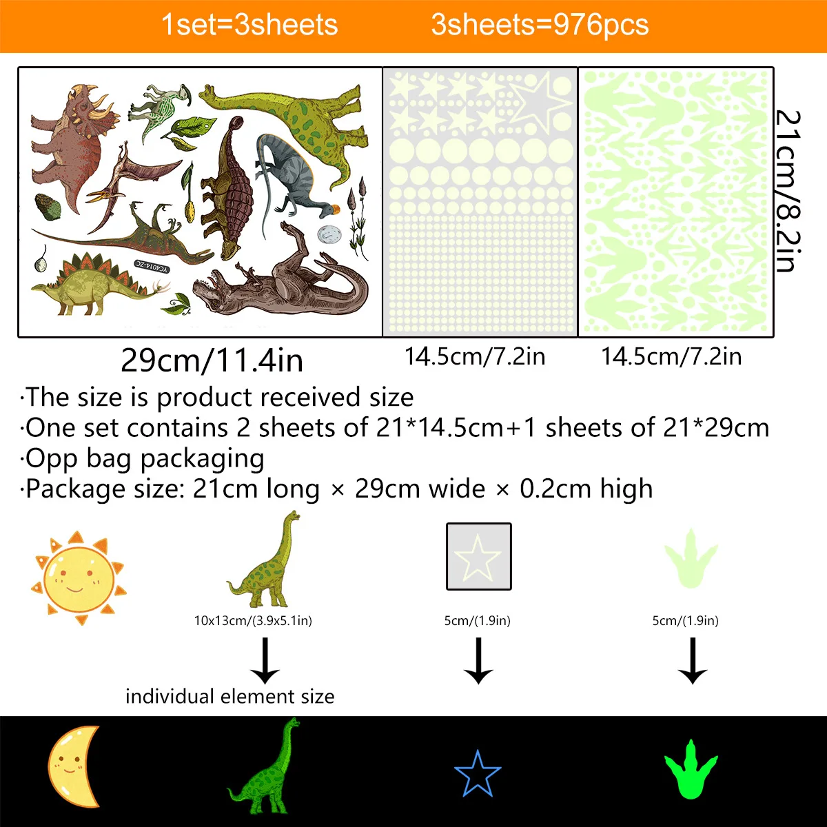 Luminous Dinosaur Wall Sticker for Kids Room Decals Glow in the Dark Removable Dino Glowing Luminous Stickers Children'S Bedroom